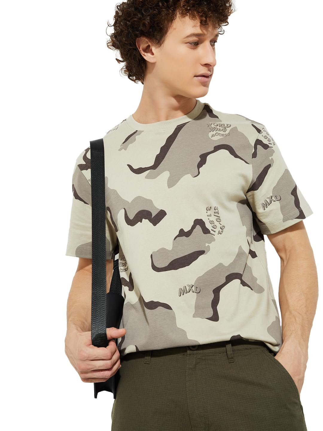 Mens Cotton Regular Fit URB_N Half Sleeves Round Neck Camouflage Print T-Shirt