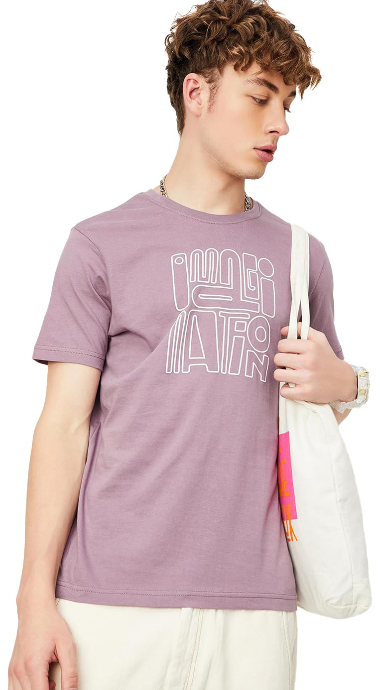 Mens Cotton Letter Print Regular Fit T-Shirt