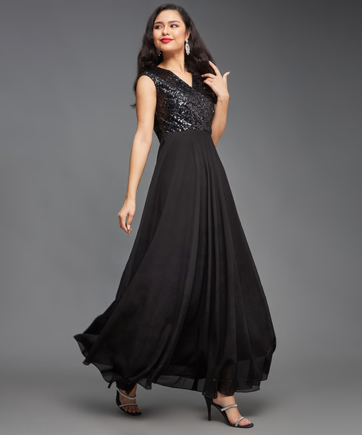 Women Wrap Black Maxi/Full Length Dress