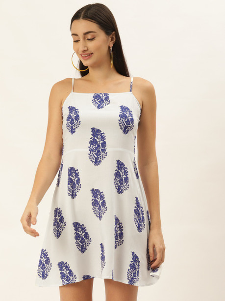Women Fit and Flare White Above Knee/Mid Thigh Length D...