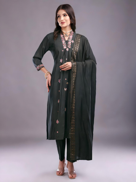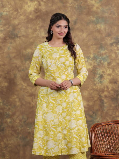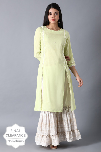 Women Embroidered Pure Cotton Straight Kurta With Attac...
