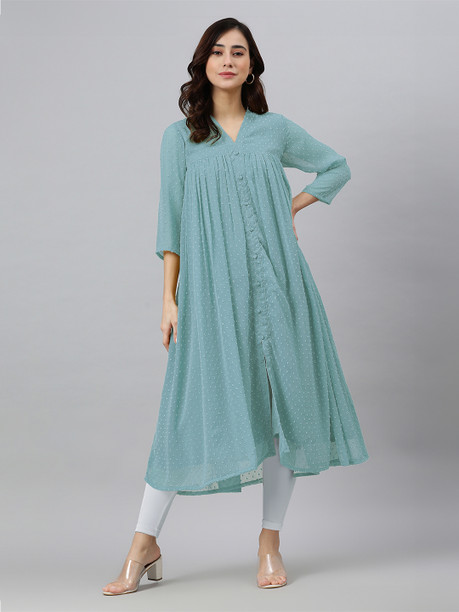 Women Fit and Flare Blue Above Knee/Mid Thigh Length Dr...