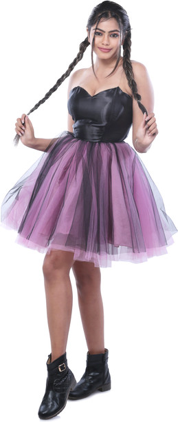 Women Fit and Flare Black Above Knee/Mid Thigh Length D...