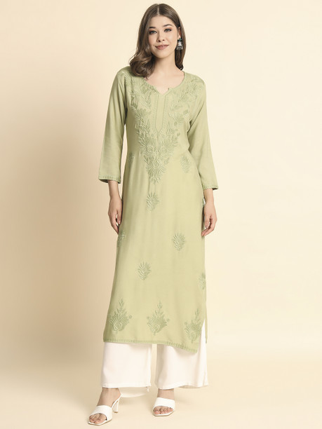 Women Chikan Embroidery Viscose Rayon Straight Kurta