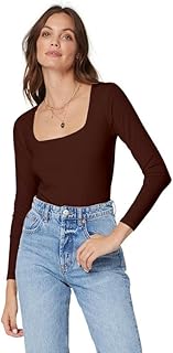 Women's Long Sleeve Slim Fit Top/T-Shirt Square Neck Casual (Top-Sakira-2)