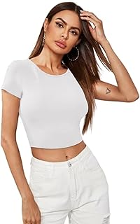 Women's Casual Short Sleeves Round Neck Crop Top Polyster Blend (17" Inches)