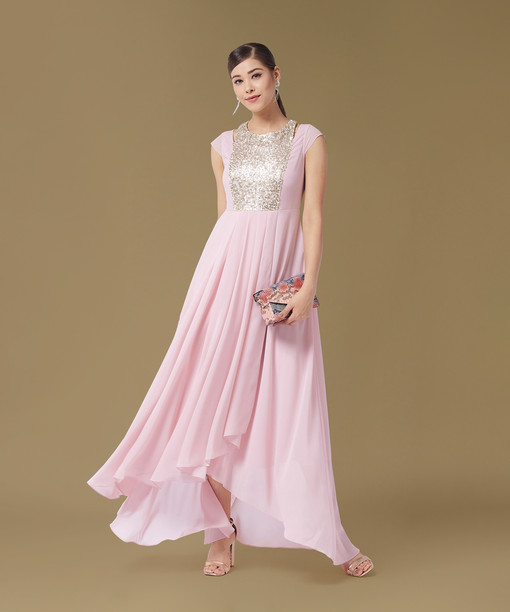 Women Fit and Flare Orange Maxi/Full Length Dress