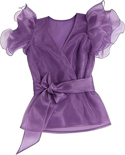 ARSH Women's Purple Peplum Top with Ruffled Sleeves, V-Neckline, Tie Waist