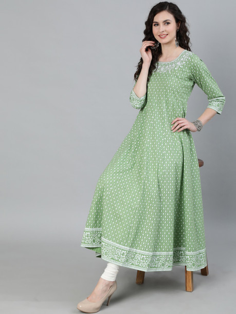 Women Printed, Embroidered Viscose Rayon Anarkali Kurta