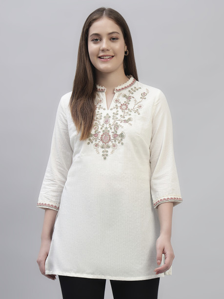 Women Chikan Embroidery Pure Cotton A-line Kurta