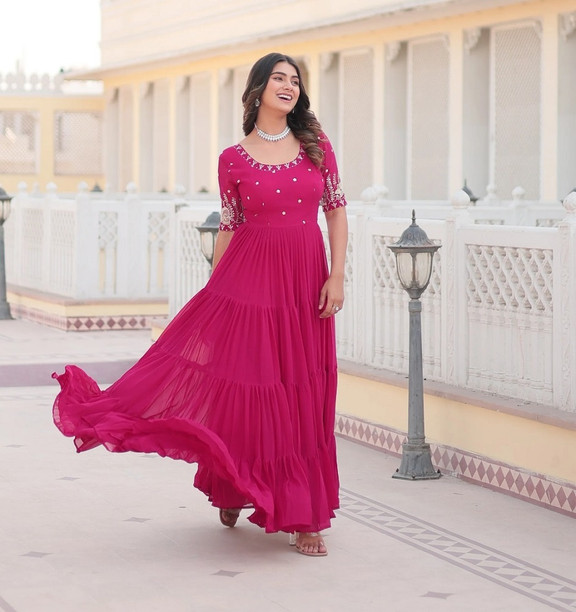 Women Embellished Georgette Gown Kurta