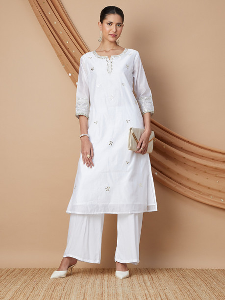 Women Embroidered Pure Cotton Straight Kurta