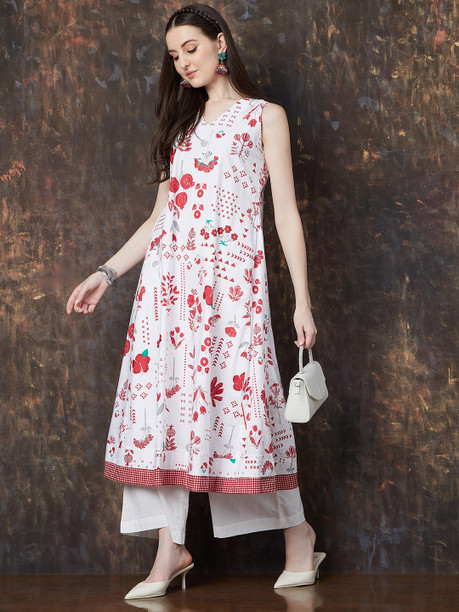 Women Printed Pure Cotton Straight Kurta