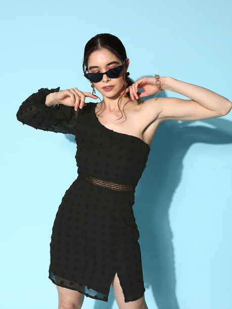 Women Fit and Flare Black Above Knee/Mid Thigh Length D...