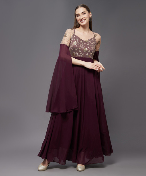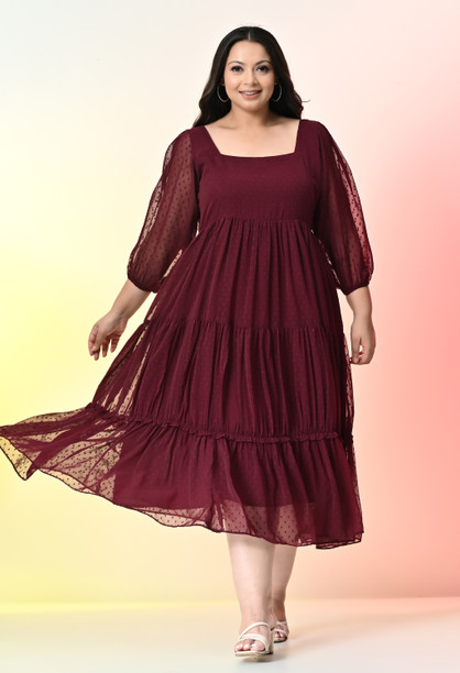 Women Fit and Flare Maroon Midi/Calf Length Dress