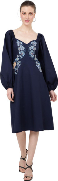 Women Fit and Flare Dark Blue Midi/Calf Length Dress
