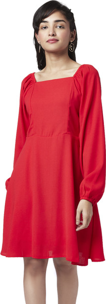 Women Fit and Flare Red Above Knee/Mid Thigh Length Dre...