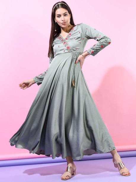 Women Wrap Grey Maxi/Full Length Dress