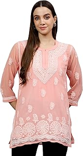 Hand Embroidered Lucknowi Chikankari Georgette Women's Short Top Tunic with Slip SCL9115