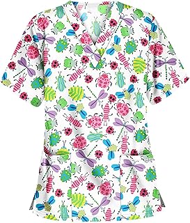 Womens V Neck Scrub Top Soft Nurse Work Uniform for Healthcare Beauty Center L Colorful