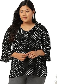Plus Size Women's 4801AC_ Black & White Polka Dot Printed Ruffles Regular Top (XXXXL)