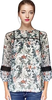 BeforeAfter Floral Print lace Insert Georgette top for Women