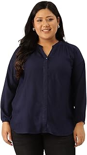 Plus Size Women's 4707AC_Wine Solid Color Mandarin Collar Top