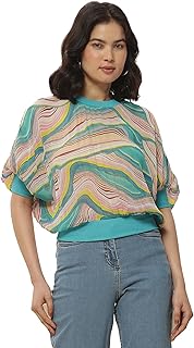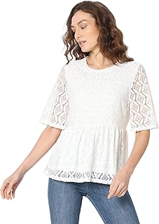 Women Polyester Regular Round Neck Gathered Semi Sheer Peplum Top