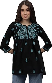 Hand Embroidered Lucknowi Chikankari Black Cotton A-line Short Top & Tunic for Women SCL9201