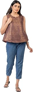 Women's Maroon Jacquard Top | Ethnic Tops for Women | Festive Top | A Line Top for Women | Round Neckline Sleeveless Top