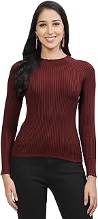 Women Women Full Sleeves Hight Neck Ribbed Top