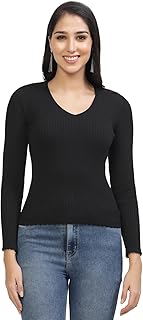Women Full Sleeves V-Neck Ribbed Top