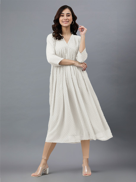 Women Fit and Flare White Midi/Calf Length Dress